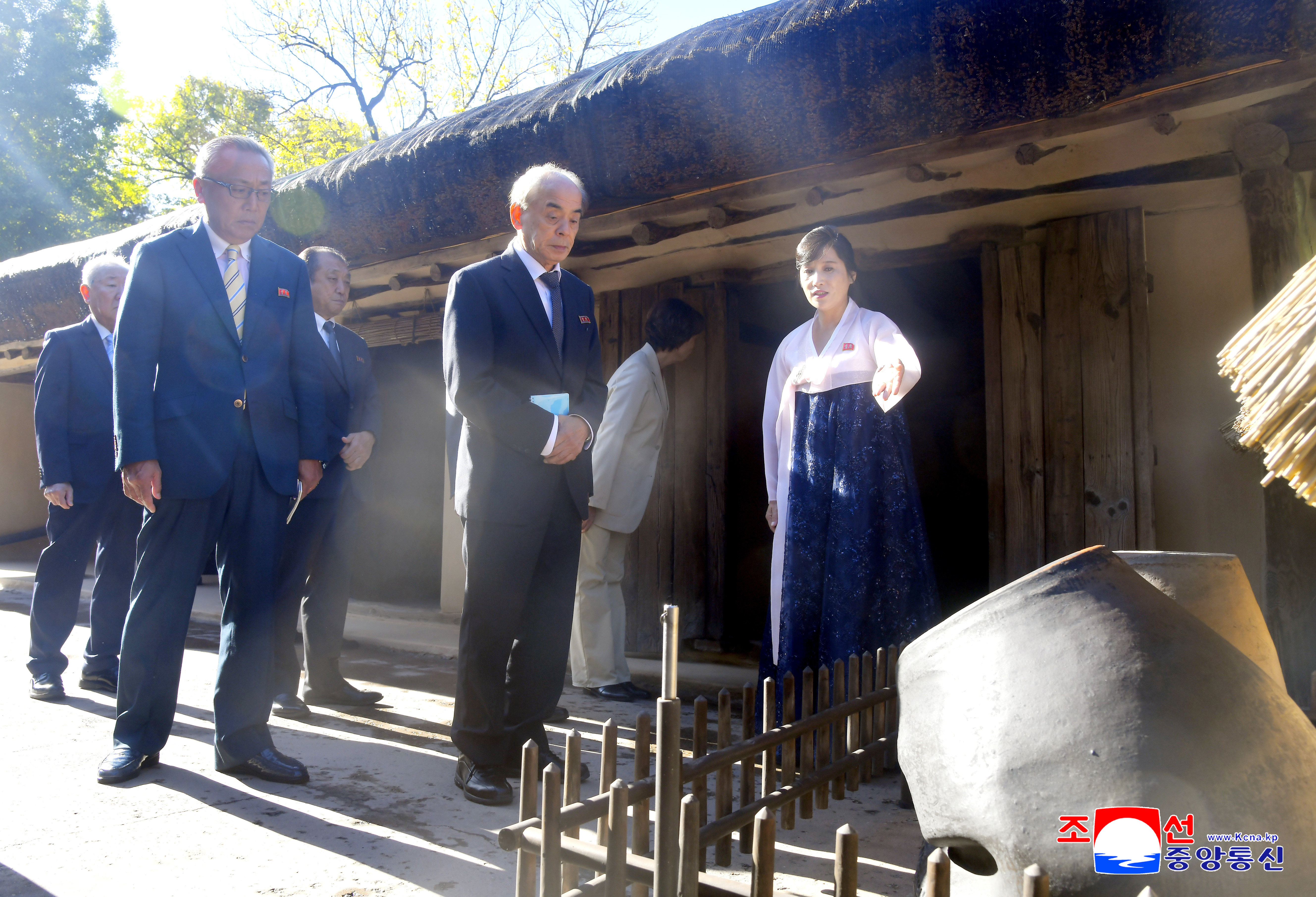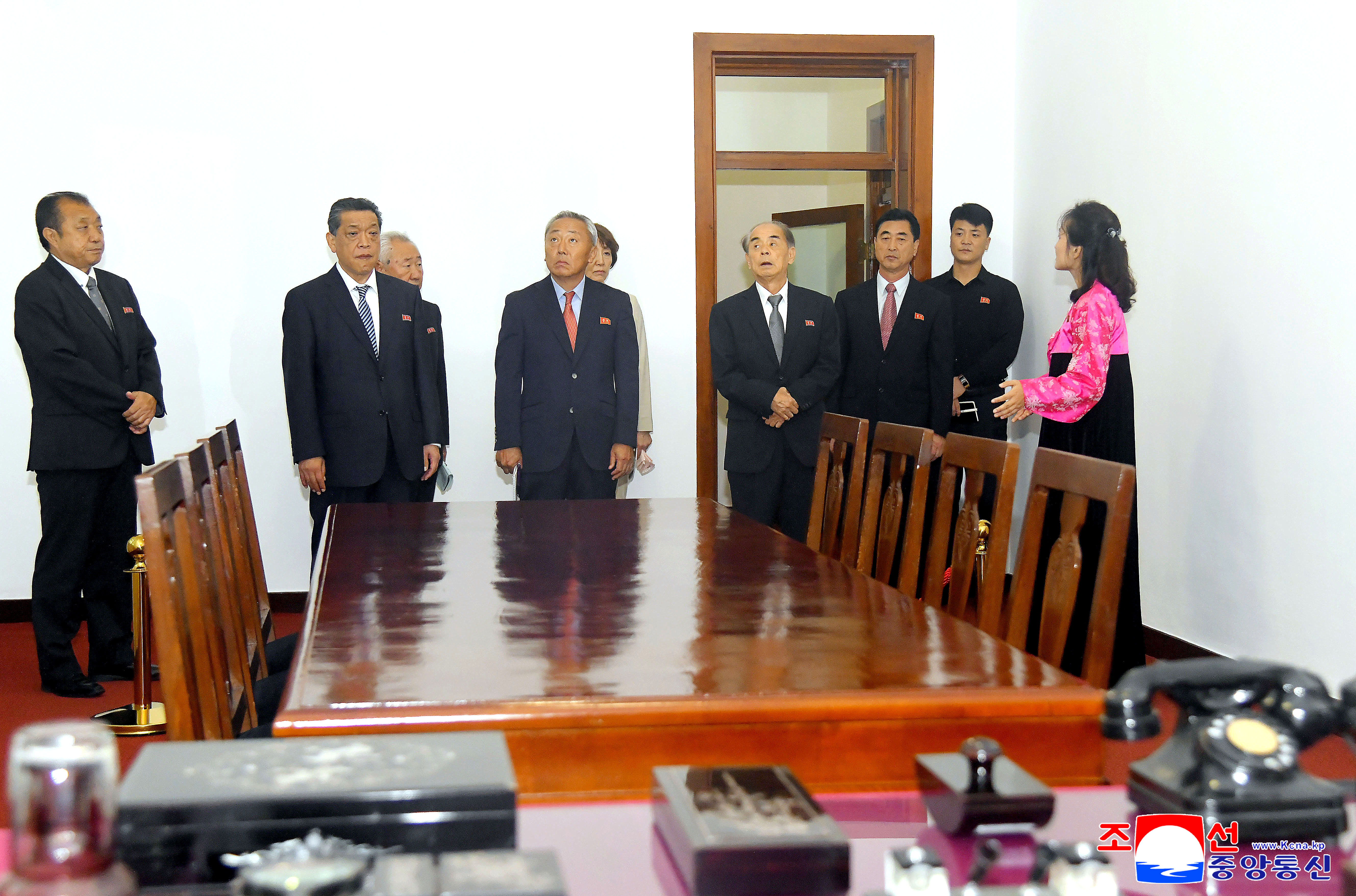 Ким Ир Сена в Мангендэ члены делегации осмотрели бережно хранимые исторические реликвии, слушая разъяснение о бессмертной революционной жизни и заслугах великого вождя товарища