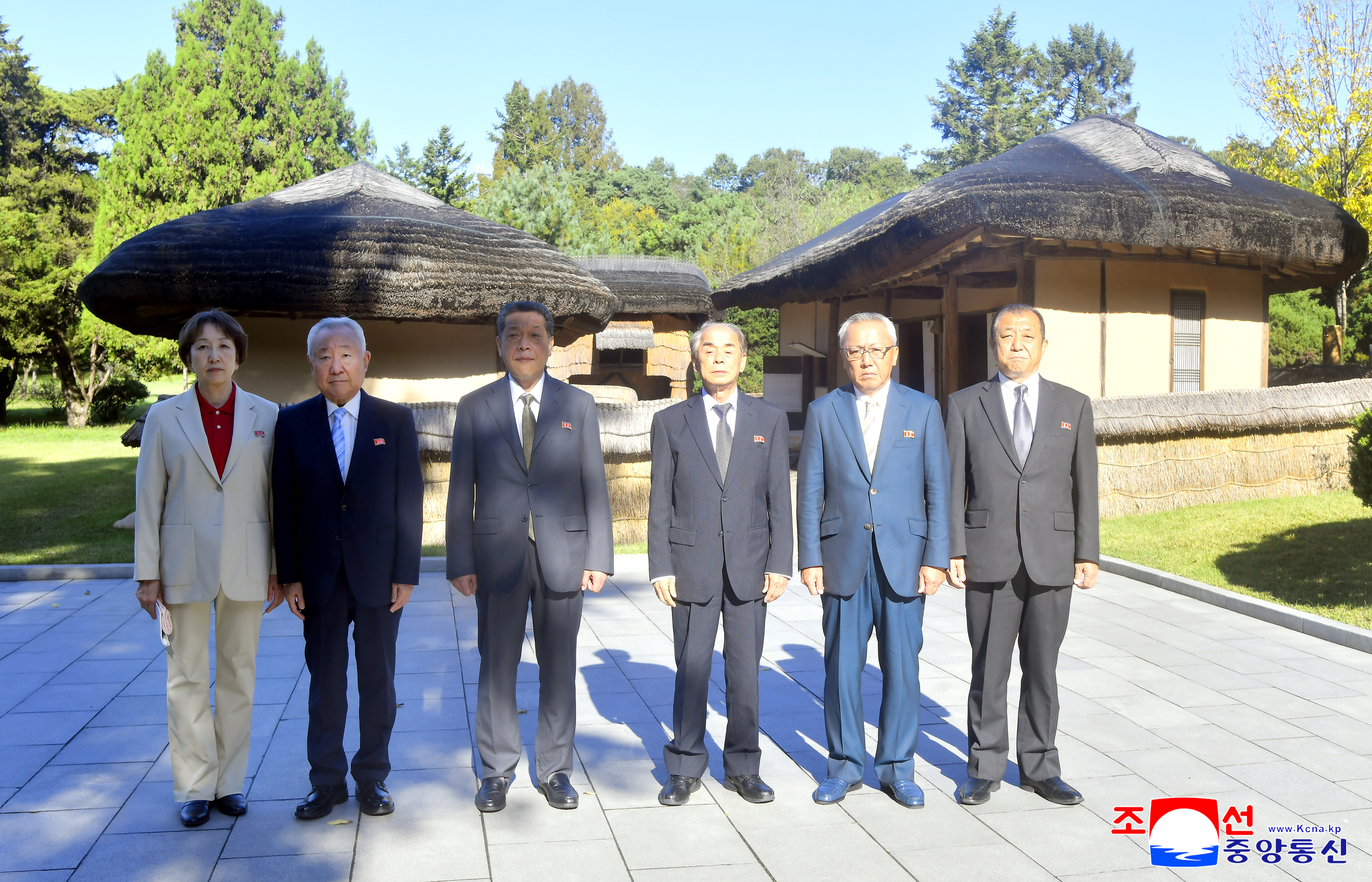 Поздравительная делегация корейцев в Японии в честь 80-летия основания ТПК во главе с председателем главного управления Чхонрёна в г. Осака Пу Ён Уком посетила Мангендэ – Святыню революции.