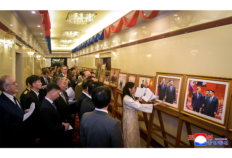 위대한 수령 김일성동지와 위대한 령도자 김정일동지,경애하는 김정은동지께서 조선윁남친선관계발전에 쌓아올리신 불멸의 업적을 담은 영상사진문헌들을 돌아보았다.