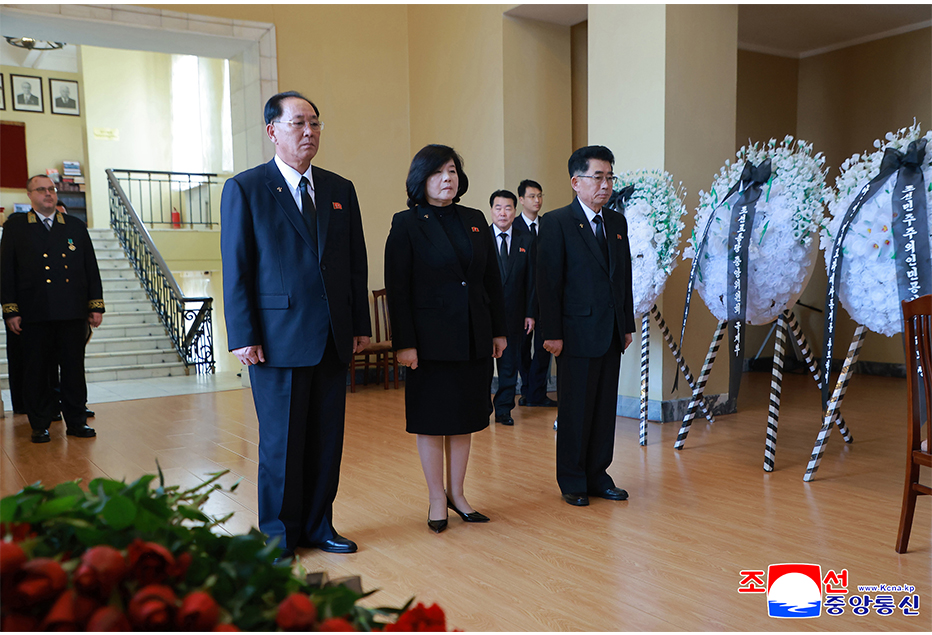 조선민주주의인민공화국 외무상 최선희동지,조선민주주의인민공화국 국방상 노광철동지,조선로동당 중앙위원회 국제부장 김성남동지가 우리 나라 주재 로씨야련방 특명전권대사 알렉싼드르 이와노비치 마쩨고라동지의 사망과 관련하여 10일 우리 나라 주재 로씨야련방대사관을 방문하고 조의를 표시하였다.