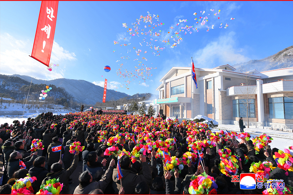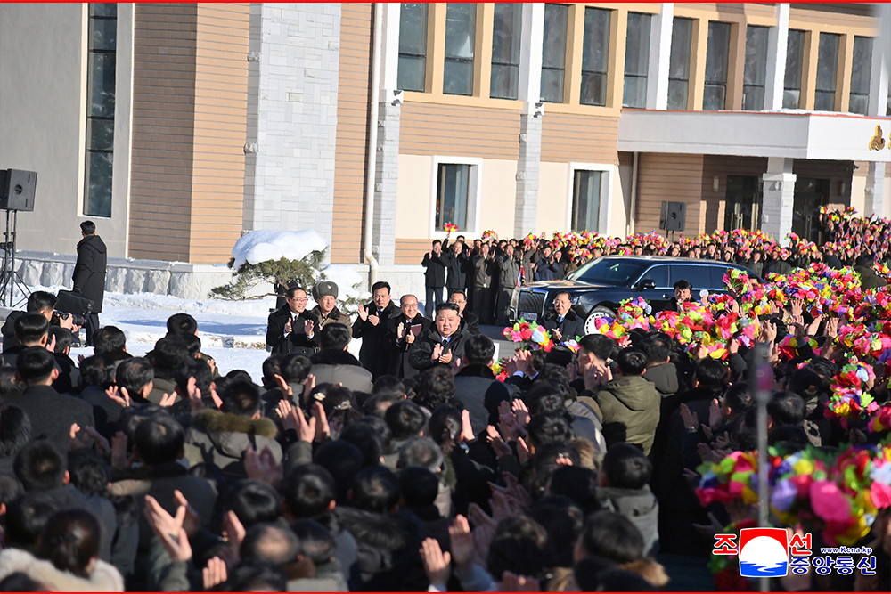 Kim Jong Un arrived at the venue of the ceremony, all the participants raised stormy cheers with boundless reverence for the dear father of the great family of the country who is dynamically ushering in a new era of socialist civilization.