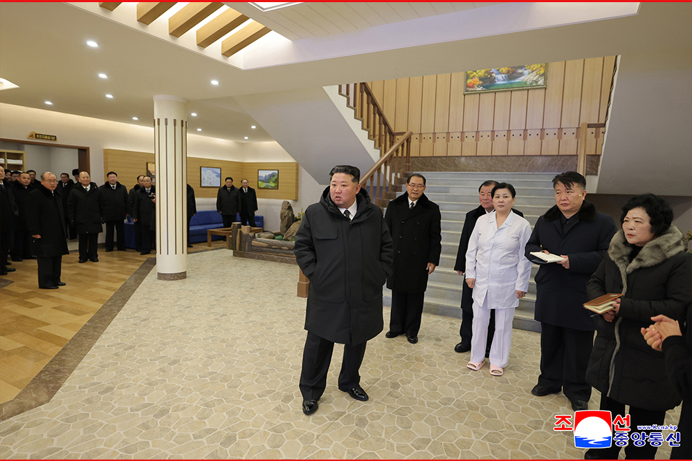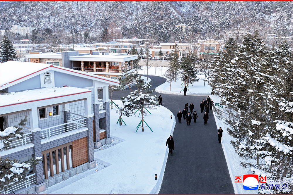 Kim Jong Un who devoted himself to newly building the holiday camp with refined architectural beauty of our style and diverse service functions in a picturesque place.