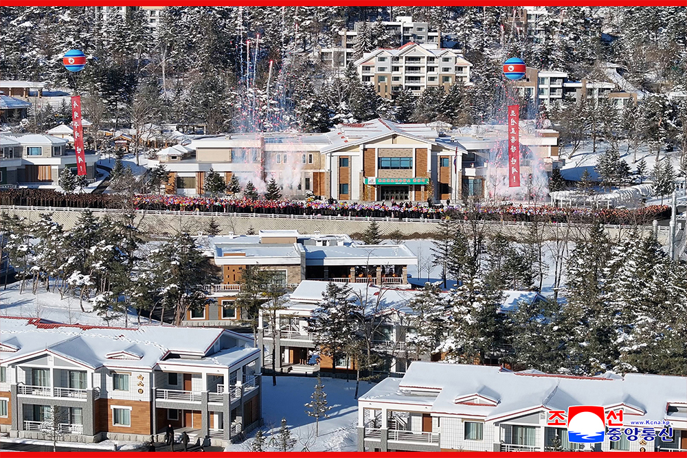 Present at the ceremony were senior Party and government officials and other members of the central leadership body of the WPK, officials concerned, officials in North Hamgyong Province and Kyongsong County, working people, builders and employees of the holiday camp.