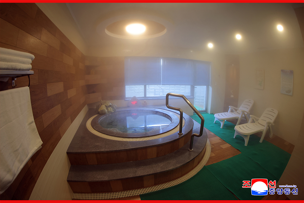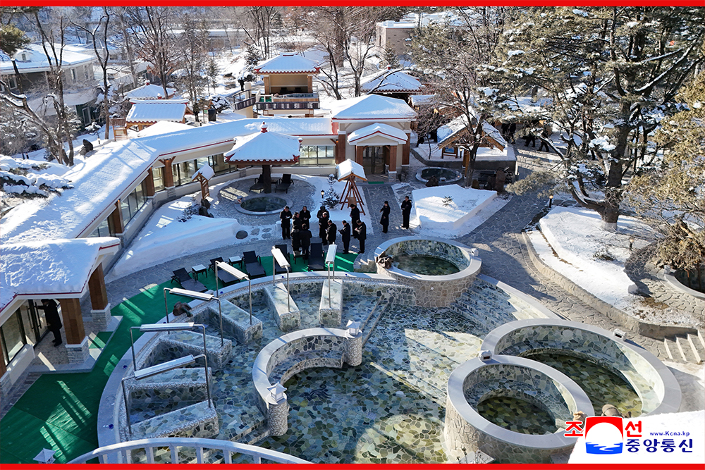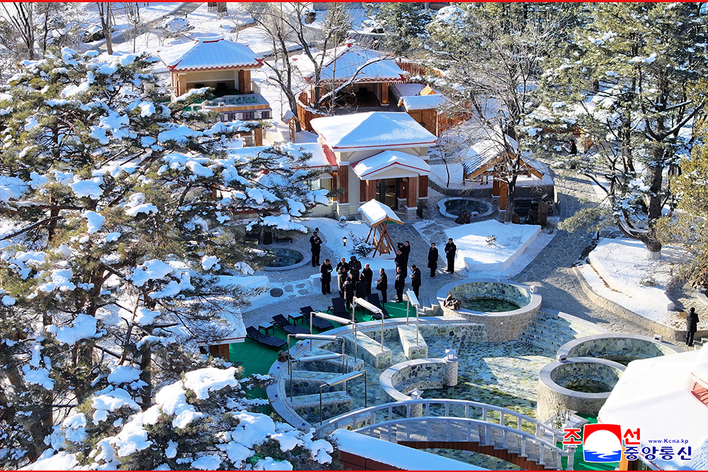 Kim Jong Un set it as an important principle in the construction of the holiday camp in Onpho area to well preserve the natural environment and paid deep attention to making its landscape contribute to the promotion of the people's health and their emotional life, the speaker said, adding: Thanks to his earnest sincerity, a walkway leading to the thick forest and a stream meandering through the area of the holiday camp for all seasons came to present a unique natural beauty and the flawless edifice with enough functional conditions according to the mission and purpose of the hot-spring therapy could be provided for the people.