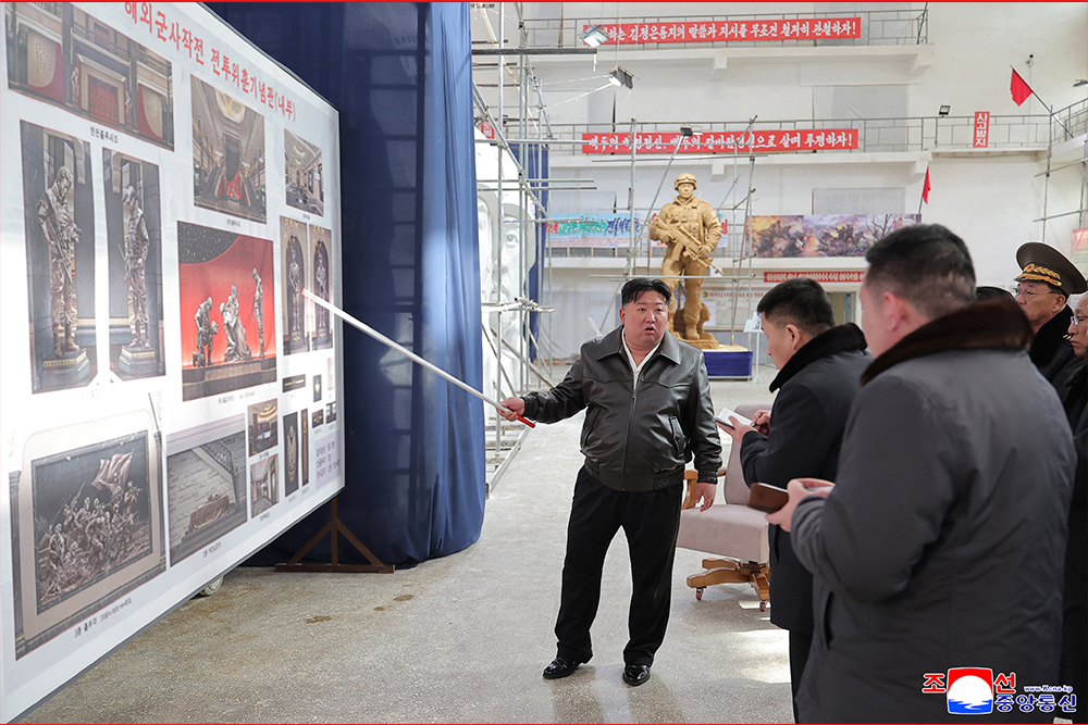 조선로동당 총비서이시며 조선민주주의인민공화국 국무위원장이신 경애하는 김정은동지께서 1월 25일 만수대창작사를 찾으시여 해외군사작전 전투위훈기념관에 건립하고 설치할 조각창작사업을 지도하시였다.