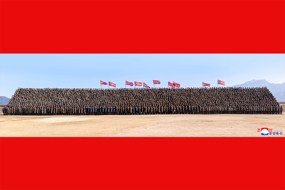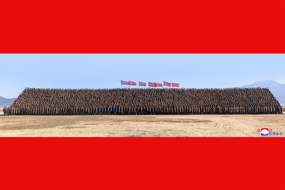 Ким Чен Ын сфотографировался на память вместе с командирами и образцовыми солдатами 124-ых полков всех ступеней.