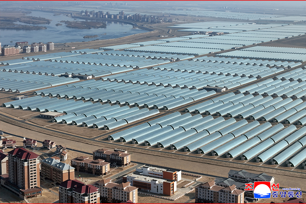 The Sinuiju Combined Greenhouse Farm, a beautiful combination of a thousand and hundreds of modern greenhouses of different types, vegetable science research center, modern houses, various bases for cultural life and peculiar landscape, is another proud monumental edifice witnessing the history of great changes in the era of
