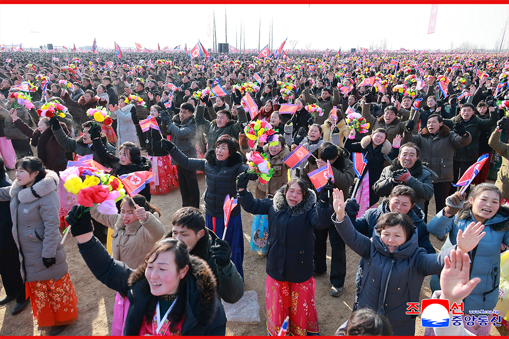 He extended warm thanks and congratulations reflecting the minds of all the people in the province to the reliable youth shock brigade members and soldier-builders who successfully built the modern large farm town and presented it to the Ninth Congress of the WPK as a gift, following the proud course in which they demonstrated the honour of vanguard in the struggle for prosperity of our state and the well-being of the people.