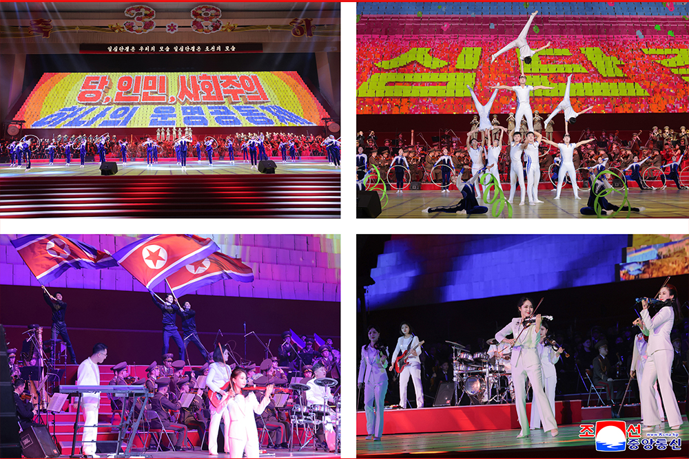金正恩同志偕同李雪主女士和心爱的女儿步入观众席。此时,盼着这一光荣时刻到来的全体参加者心潮澎湃,爆发出了雷鸣般的“万岁”欢呼声。