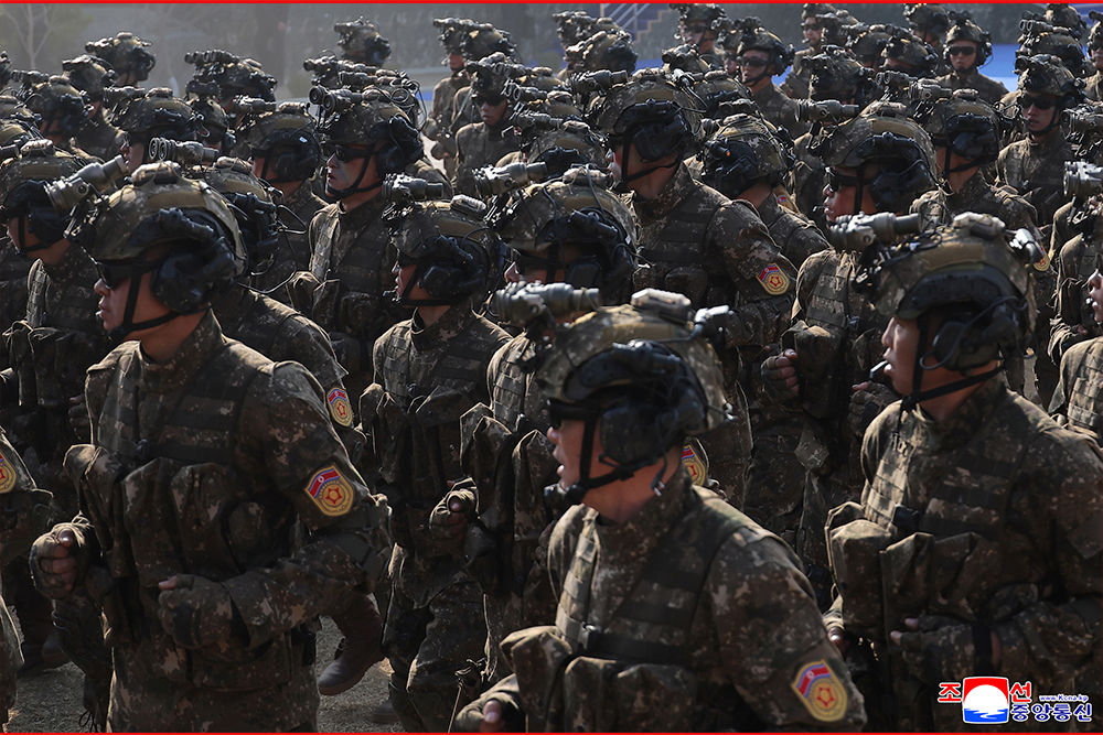 Ким Чен Ын, с радостью наблюдая за учениями преисполненных уверенностью в себе спецназовцев-девушек, тепло вдохновил их.