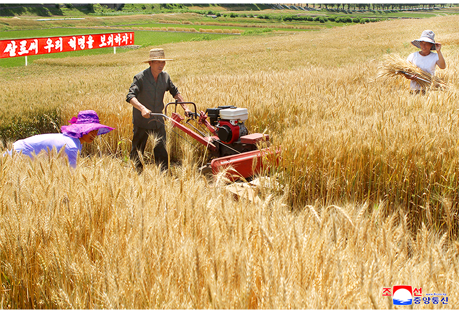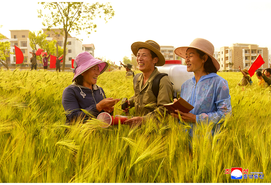 Rich harvest in wheat and barley farming made in a major thrust front of socialist economic construction is a clear proof of the validity and vitality of the new agricultural policy of the WPK. It is also a brilliant fruition of the revolutionary creation and thoroughgoing spirit of implementation of the DPRK people who are upholding the plan and decision of the Party Central Committee with one mind and loyalty, cherishing the firm faith that the plan and decision of the Party Central Committee are science, practice and victory.