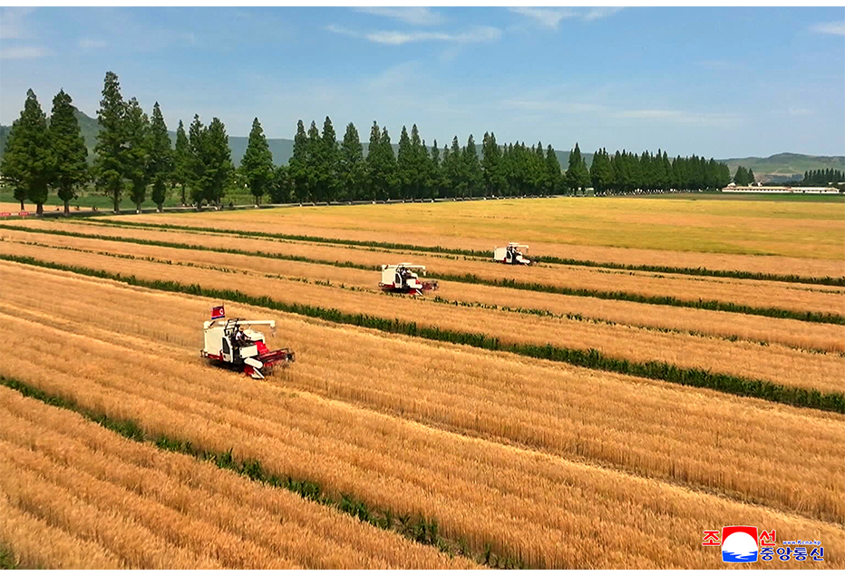 Thanks to the great fatherly leader who has always discussed the issue of wheat farming and taken necessary measures to steadily increase the area of wheat cultivation and output every year at important meetings and wisely led to their execution, a unified system of command and supply of necessary farming materials for expanding and developing the wheat and barley farming was established throughout the country and a new turn was brought about in agricultural production.