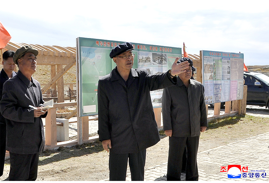 He visited Samjiyon City. He learned about the progress made in the projects, going round the area of Lake Chon on Mt Paektu, the northern area of Mt Phothae, Samjiyon Airport, the Ponnamu Hotel, the Ikkal Hotel and other major construction projects being accelerated under the grandiose plan of the Party Central Committee to turn the area of Mt Paektu into a cultural tourist resort frequented by the DPRK people and foreigners.