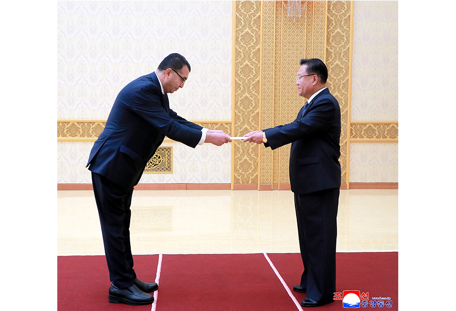 Приняты верительные грамоты чрезвычайного и полномочного посла Государства Палестина в нашей стране, присланные президентом Государства Палестина Махмудом Аббасом Председателю Государственных дел Корейской Народно-Демократической Республики (КНДР) товарищу Ким Чен Ыну.