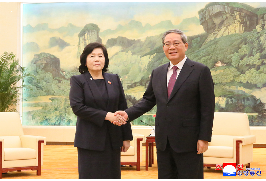 朝鲜劳动党中央委员会政治局委员、朝鲜民主主义人民共和国外务相崔善姬29日在人民大会堂会见中国共产党中央委员会政治局常委、中华人民共和国国务院总理李强。