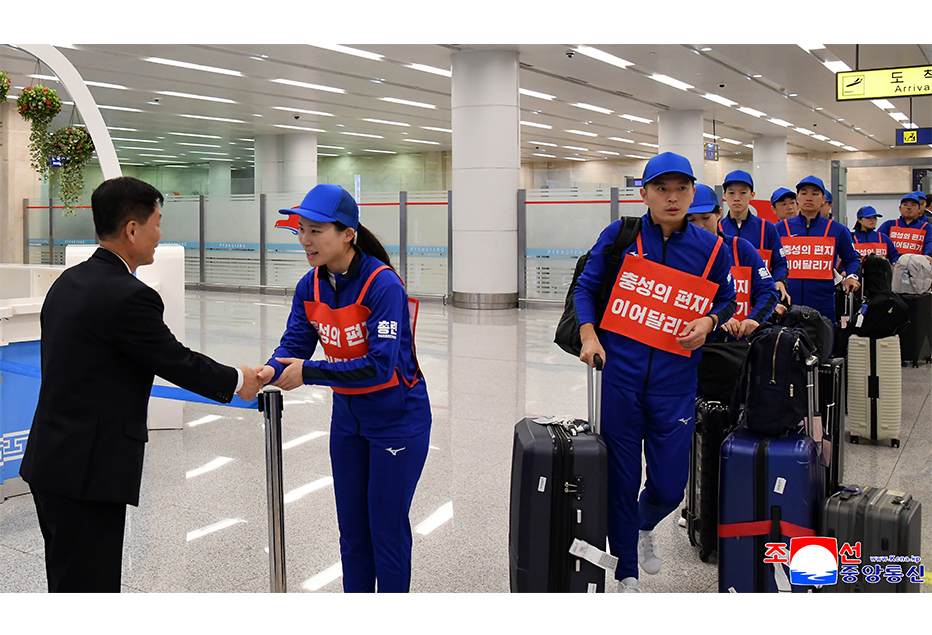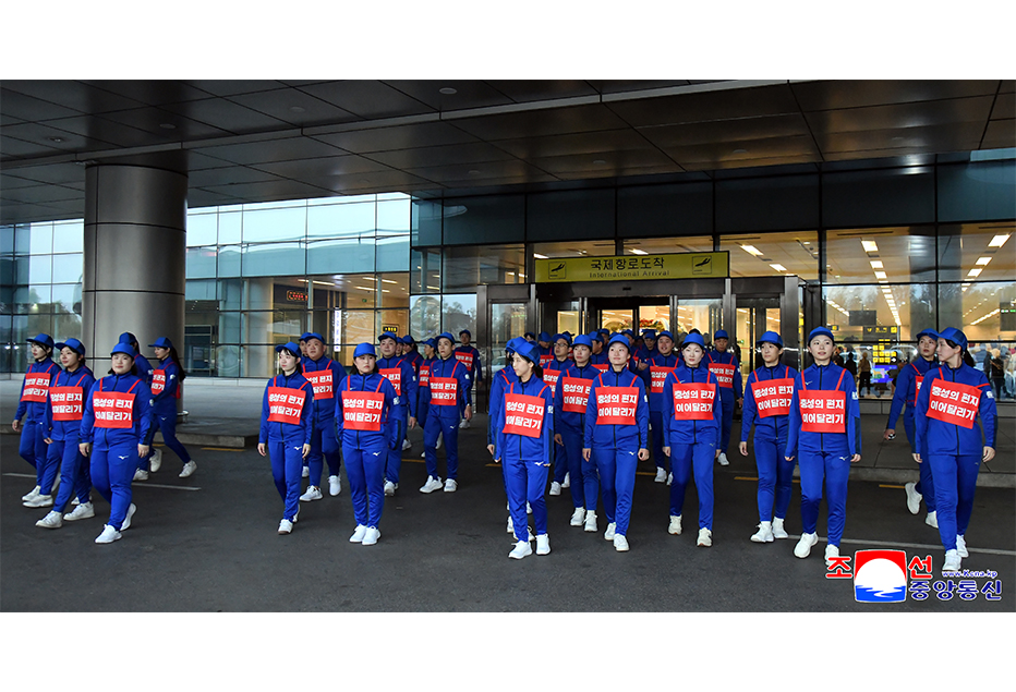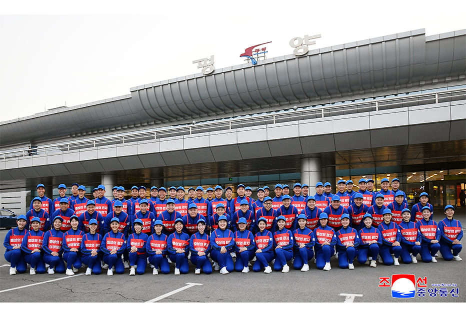 At Pyongyang International Airport, officials concerned warmly greeted the delegation with compatriotic feeling.