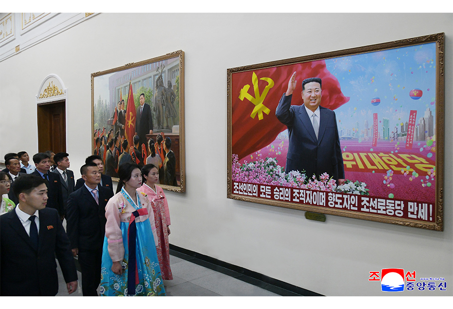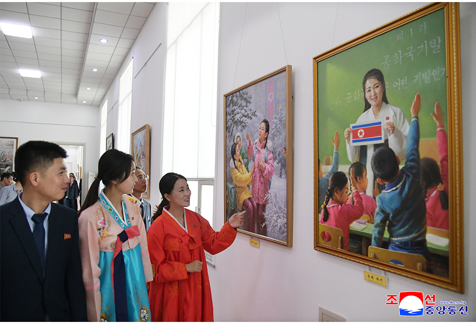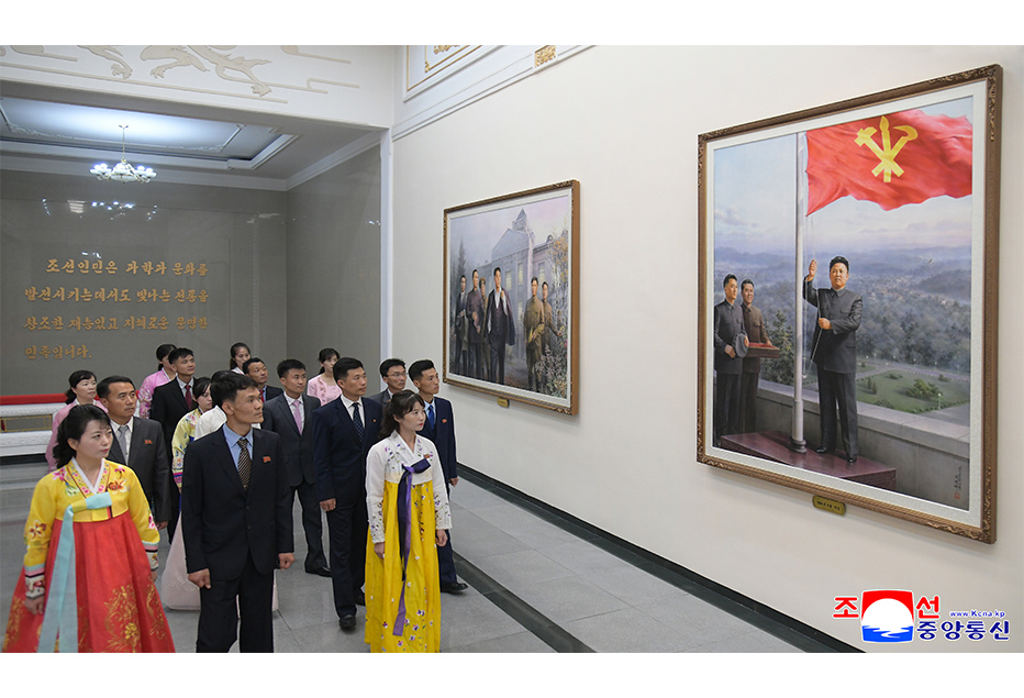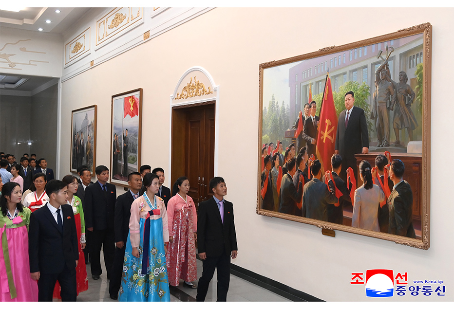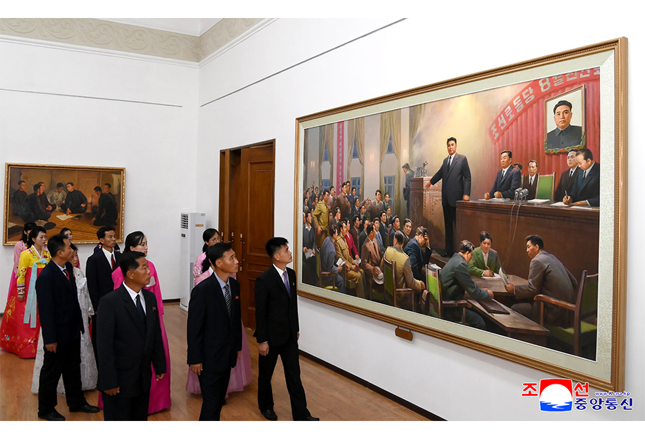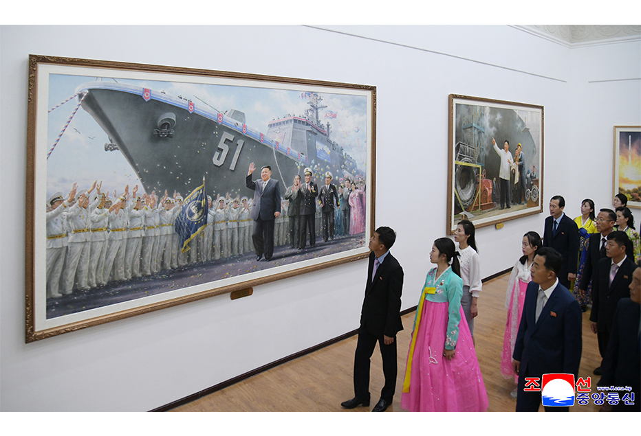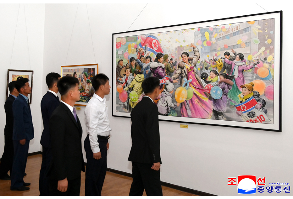 庆祝朝鲜劳动党成立80周年国家美术展正式开幕。展场上展出了反映卓绝伟人们从建党初期起长达80年来领导我们党坚定走百战百胜一条路的党建业绩和崇高伟人风范的美术作品。