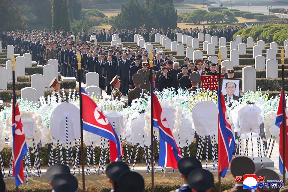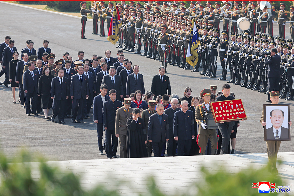 A ceremony of bidding last farewell to the late Kim Yong Nam took place at the Patriotic Martyrs Cemetery in Sinmi-ri.