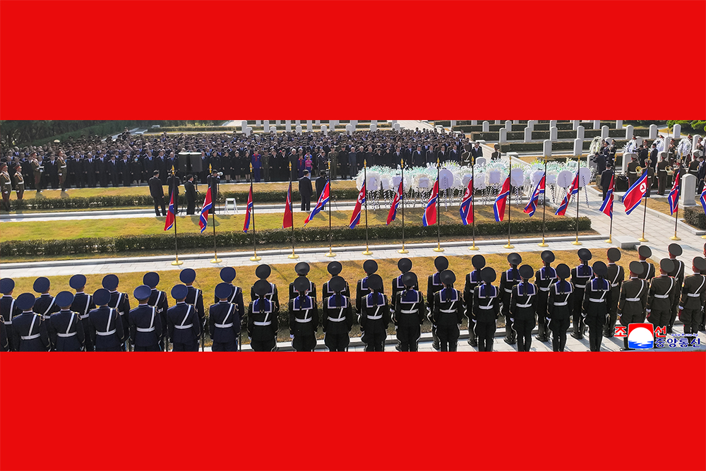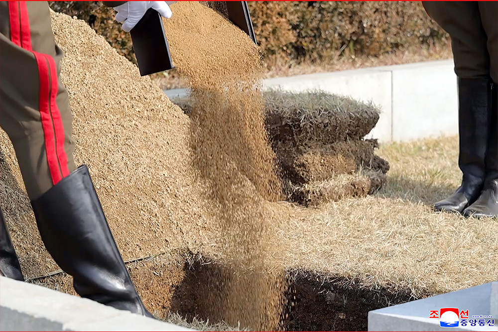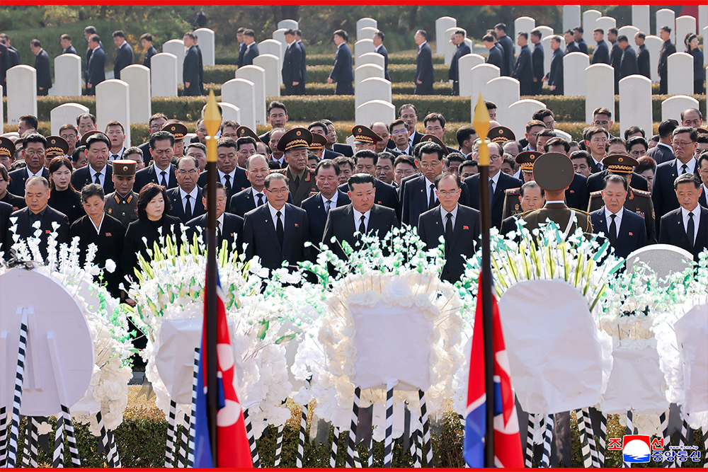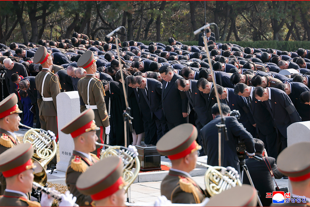 Kim Jong Un paid his respect to all the patriotic martyrs, who glorified their heroic life with firm confidence in the victory of the revolution and fervent patriotism, before the monument to the patriotic martyrs of the cemetery.