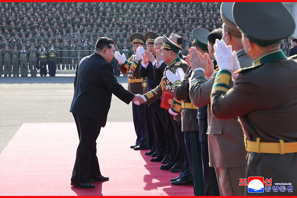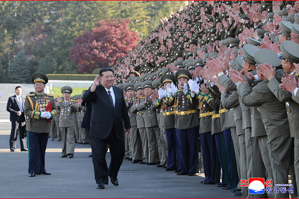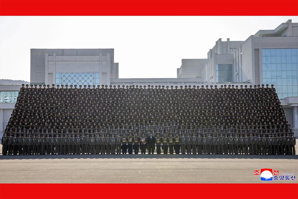 김정은동지께서는 조선로동당의 령도에 충실한 사회안전군의 전체 장병들이 지나온 80년의 연혁보다 더 값비싸고 영광스러운 복무의 년대기를 이어나가리라는 확신을 표명하시면서 사회안전성 일군들과 함께 청사에 길이 새겨질 뜻깊은 화폭을 남기시였다.