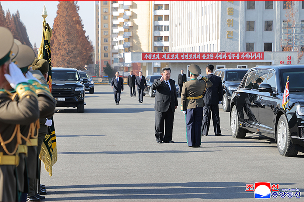 김정은동지를 사회안전상 방두섭동지를 비롯한 사회안전성의 책임일군들이 정중히 영접하였다.