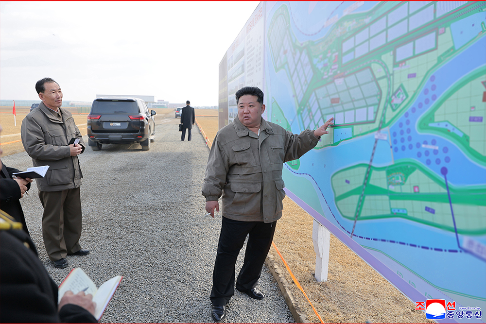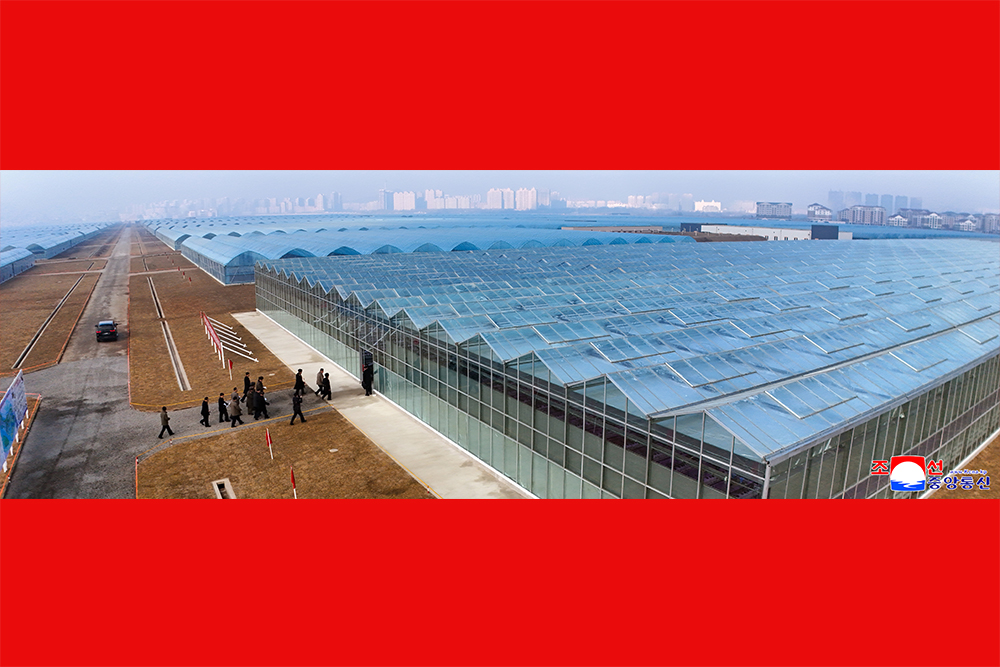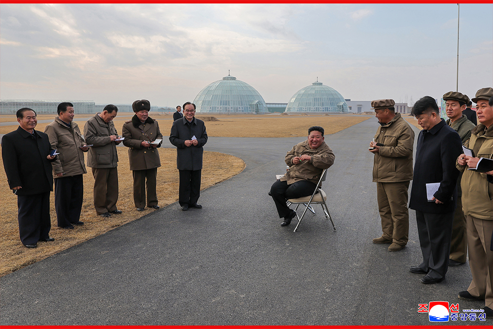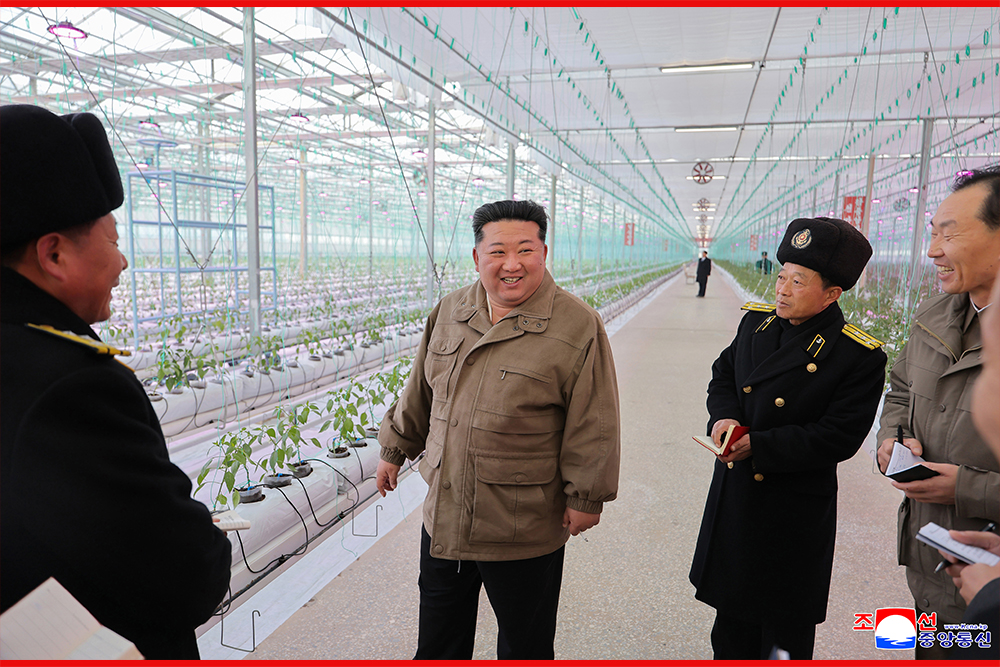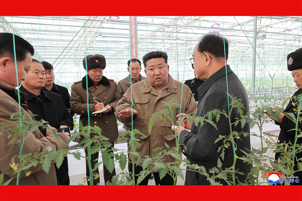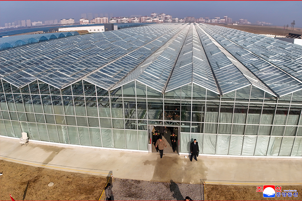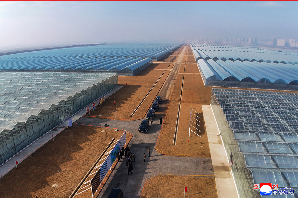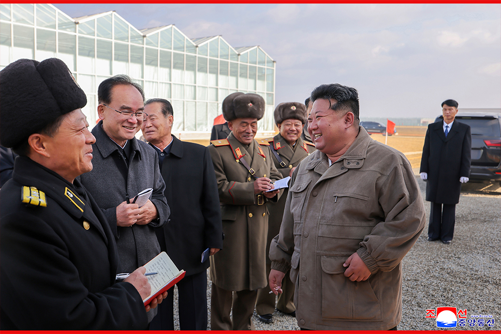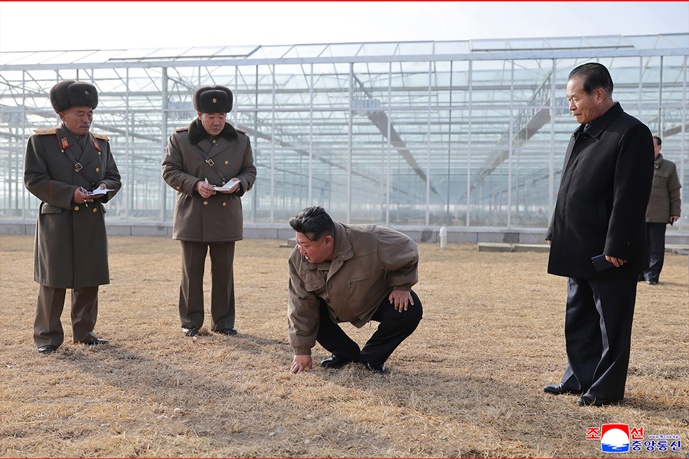 Kim Jong Un, general secretary of the Workers' Party of Korea and president of the State Affairs of the Democratic People’s Republic of Korea, gave field guidance at the construction site of the Sinuiju Combined Greenhouse Farm nearing completion on Nov. 26.