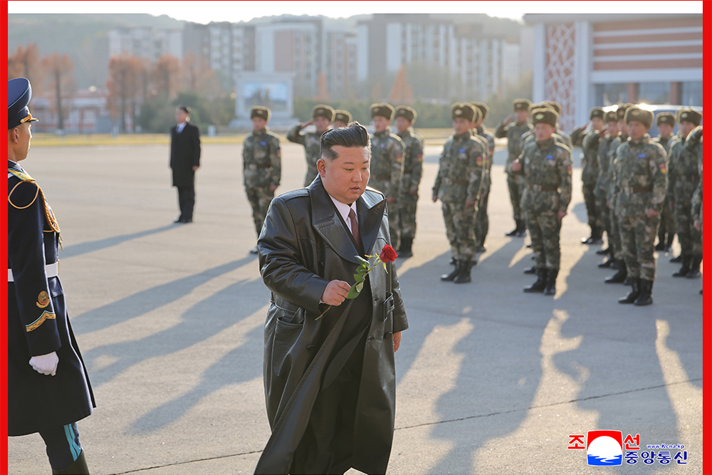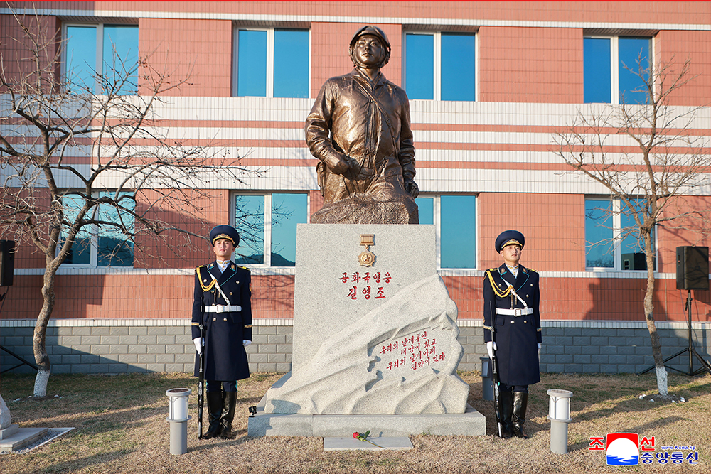 김정은동지께서는 투철한 조국수호,혁명보위정신을 지니고 하늘길에 영원히 지워지지 않을 충성의 비행운을 새긴 영웅비행사의 값높은 삶을 감회깊이 회억하시면서 렬사의 반신상에 꽃송이를 진정하시고 경의를 표하시였다.