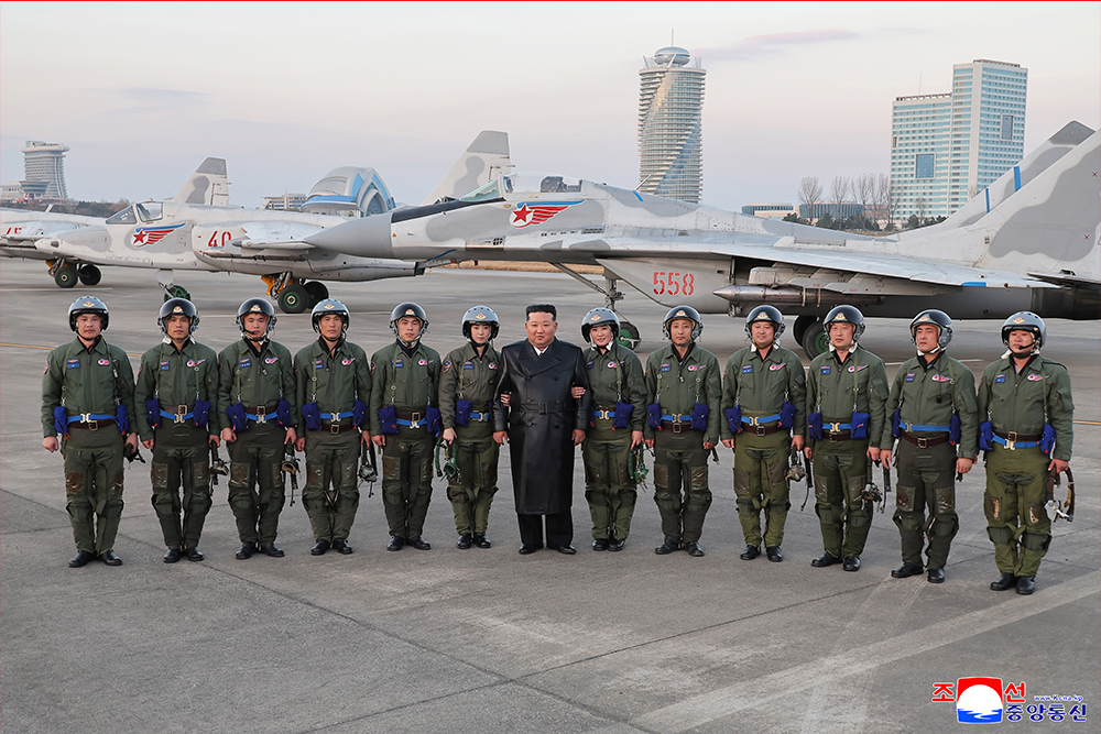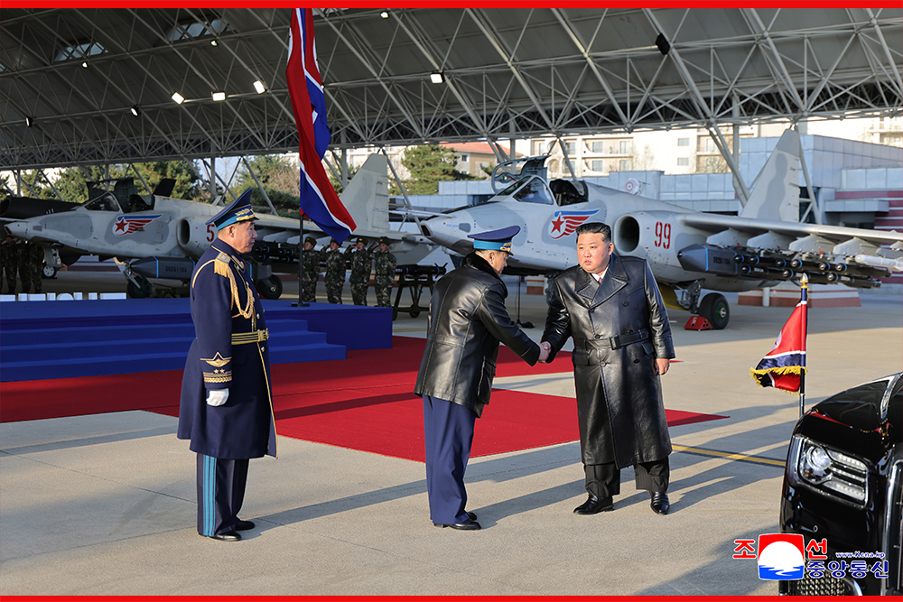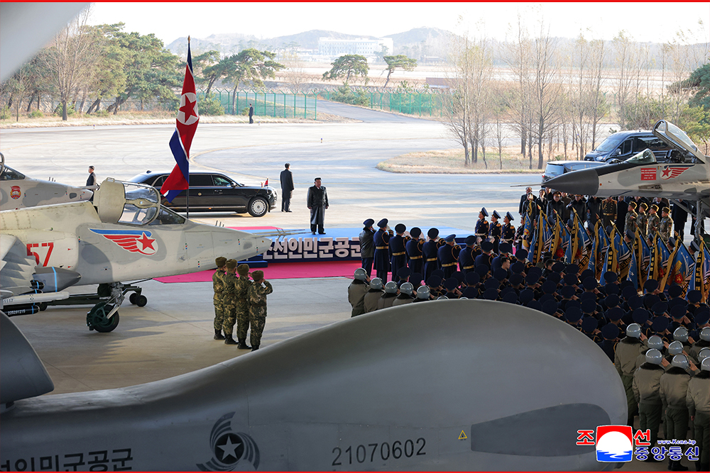김정은동지께서는 준엄한 시각에나 평화로운 나날에나 한목숨 서슴없이 내대며 충성의 항로에 위훈만을 새겨가는 미더운 공군장병들이 있기에 조국의 푸른 하늘은 언제나 안녕할것이며 공군의 강대함은 불멸할것이라고 확언하시였다.