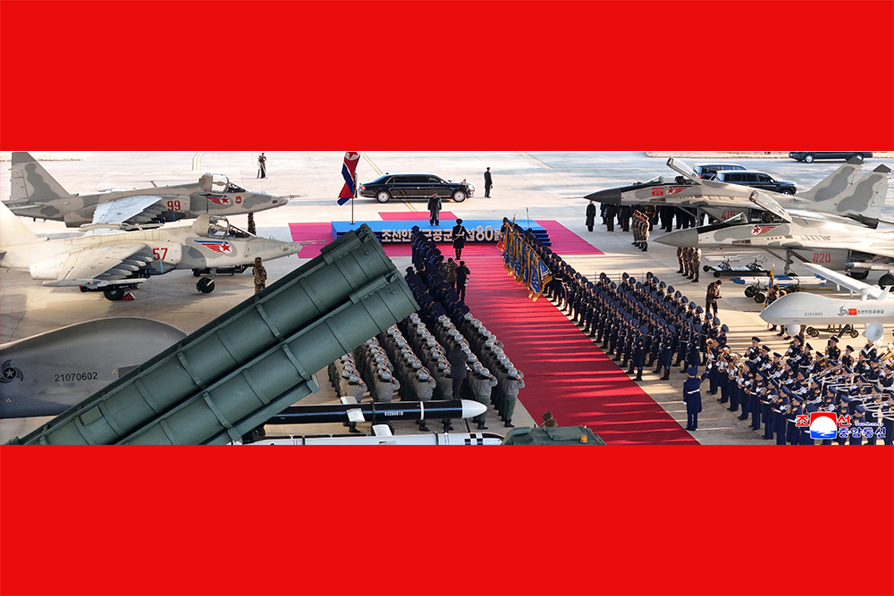 김정은동지께서는 당의 령도밑에 새 조선의 항공대로 태여난 때로부터 지난 80년간 성스러운 수호의 장로를 걸어온 인민공군의 영예로운 항적들은 하나하나가 다 세인을 놀래우는 전설이였다고 하시면서 만리창공에 수놓아진 불패의 공군신화들은 우리 군대의 높은 사상정신력과 불굴의 전투정신,용맹성의 상징으로 조국력사에 찬연히 빛나고있다고 말씀하시였다.