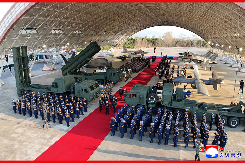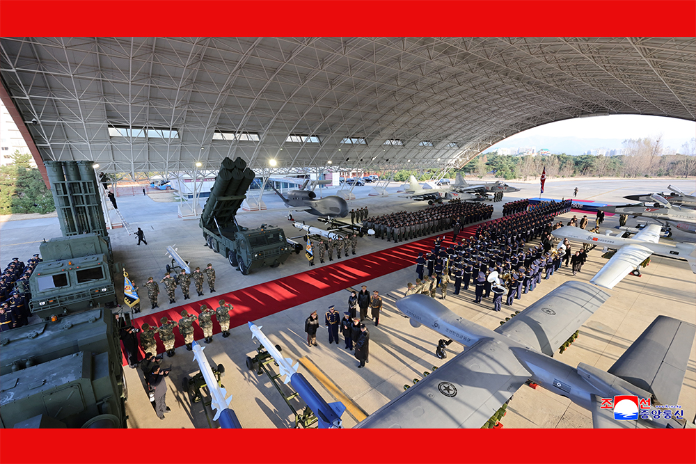 김정은동지께서는 우리 공군에는 새로운 전략적군사자산들과 함께 새로운 중대한 임무가 부과될것이라고 하시면서 핵전쟁억제력행사에서 일익을 담당하게 된 공군에 대한 당과 조국의 기대는 실로 크다고,공군은 압도적인 정신력과 공세적인 기세로써 공화국의 령공주권을 침해하려드는 적들의 각종 정탐행위들과 군사적도발가능성들을 단호히 격퇴제압해야 한다고 강조하시였다.