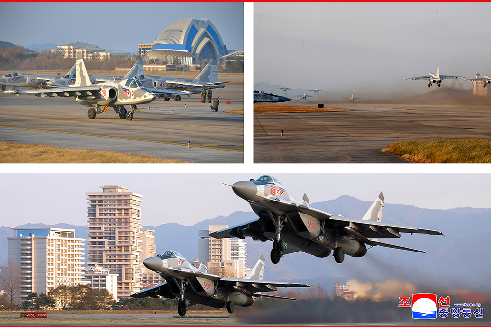 경애하는 최고사령관동지의 웅지와 정력적인 령도에 의하여 공군최정예화의 새시대가 펼쳐지고 공군의 정치사상적위세와 만반의 실전능력이 힘있게 과시되고있다고 말하였다.