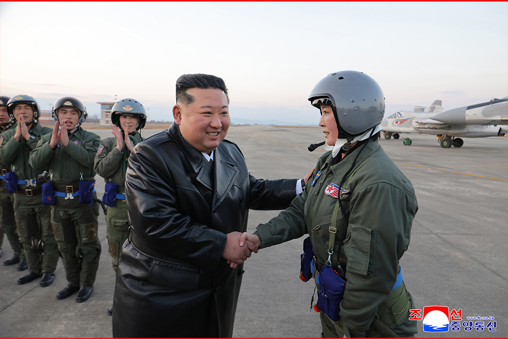 김정은동지께서는 처녀비행사들이 보여준 비행술을 높이 평가하시면서 나라의 녀성들을 대표하는 자랑스러운 동무들이라고,공군의 명예,이 나라 녀성들의 존엄을 안고 임무수행에 충실하기 바란다고 뜨겁게 말씀하시였다.