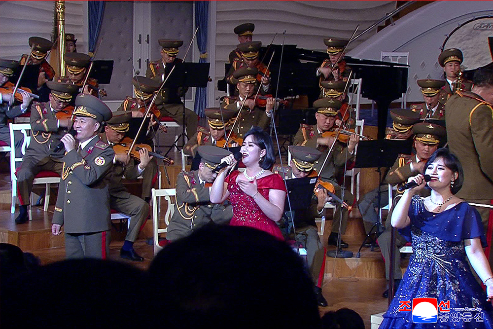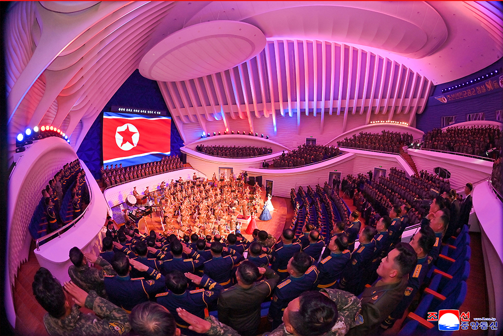 공연무대에는 조선로동당의 사상과 의지로 일관된 정병대오,싸우면 반드시 이기는 강병대오,사회주의건설의 돌파구를 열어나가는 첨병대오로서의 명예를 떨쳐온 영웅적인민공군의 위훈을 노래하는 곡목들이 올랐다.