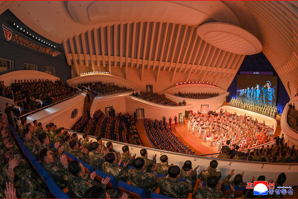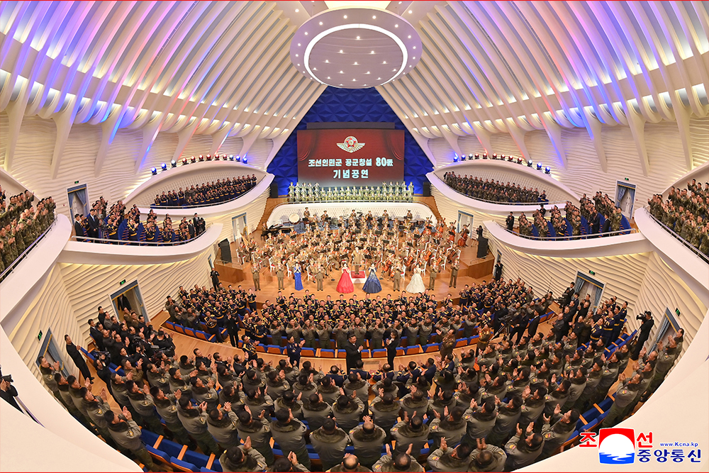 이어 조선인민군 공군창설 80돐 기념공연이 명사십리극장에서 진행되였다.
