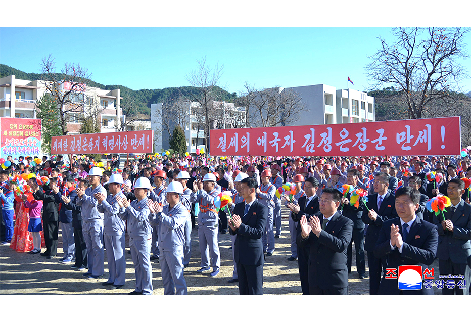 Delightful performances and dancing parties were given and the villages were in the festive mood. Officials visited the families moving into the new houses to encourage them to honourably greet the Ninth Congress of the Workers' Party of Korea with proud labour achievements.