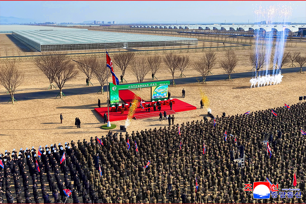 Выступивший с речью сказал, что наконец завершилось славное и плодотворное строительство тепличного комбината, которое наша партия начала для народа, и открылась большая картина беспрецедентной группы крупномасштабных теплиц всего лишь за один год. Он сказал, что сегодняшнее завершение строительства является эпохальным успехом, символизирующим поразительную перемену в 2026 году, когда будет продолжаться динамичное шествие к достижению более грандиозной цели.