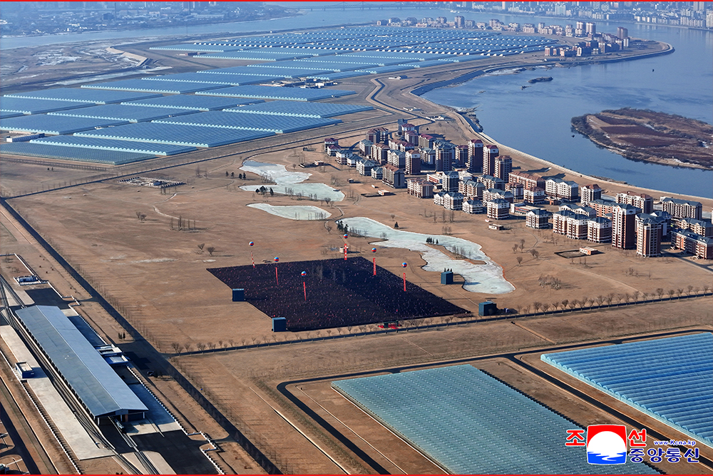 Ким Чен Ын передал теплый вдохновляющий привет военнослужащим нашей армии и молодым строителям, которые, считая абсолютной истиной грандиозный замысел и решение партии о развитии периферии, проявили пламенный патриотический энтузиазм и развернул трудовую вахту, тем самым замечательно превратили островной район в идеальный сельскохозяйственный город в новую эпоху.