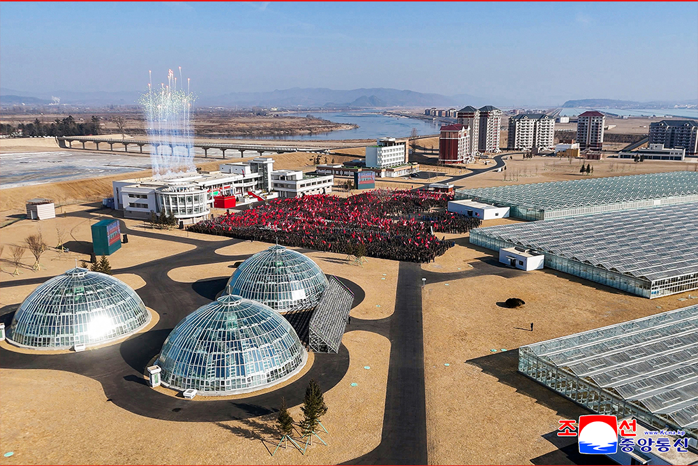 Ким Чен Ын запланировал грандиозную операцию для построения крупномасштабного тепличного хозяйства. Он принял подробные меры по построению тепличного хозяйства, поднявшегося на одну ступень выше, чем уже построенные тепличные хозяйства, в аспекте современности, прогрессивности, прагматичности и зодчества для жителей провинции Северный Пхёнъан. И неоднократно посещал стройку, лично исправлял недостатки и энергично вел весь процесс открытия и созидания.