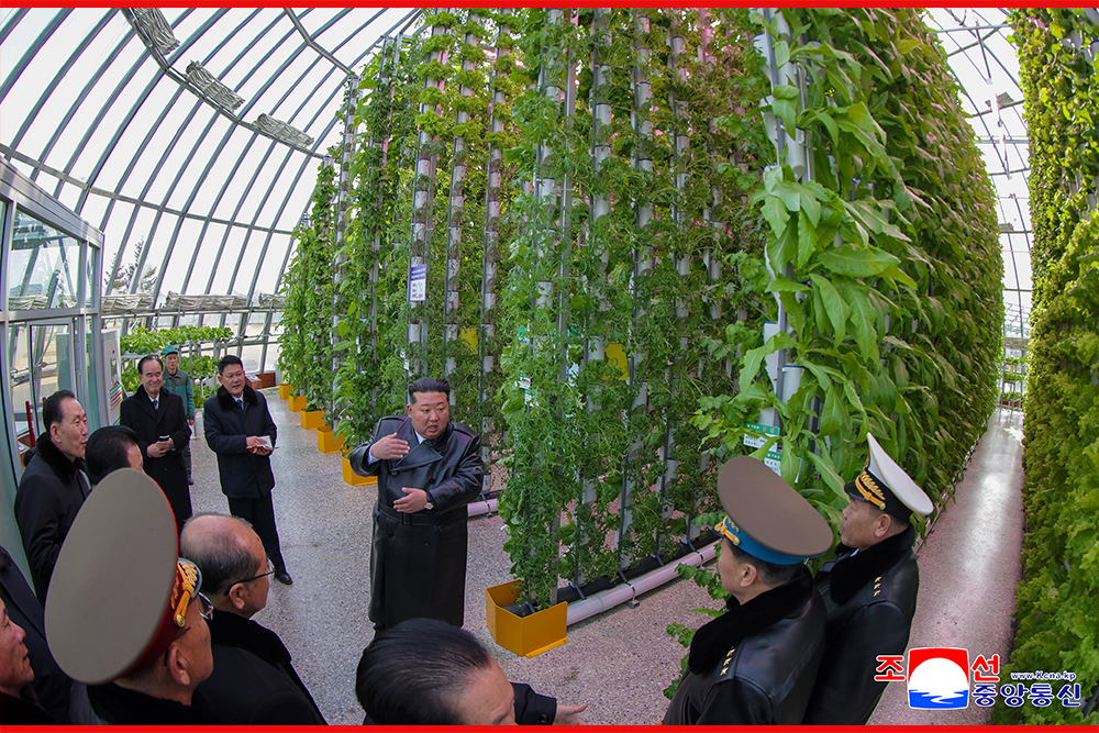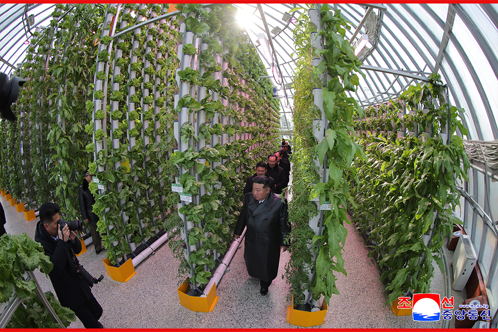 Ким Чен Ын отметил, что для увеличения производства тепличных овощей необходимо повысить уровень наукоемкости выращивания и тесно сочетать научно-исследовательскую работу с производством, активно внедрять передовые технологии и опыт во все тепличные хозяйства страны, чтобы непрерывно приумножать успехи.