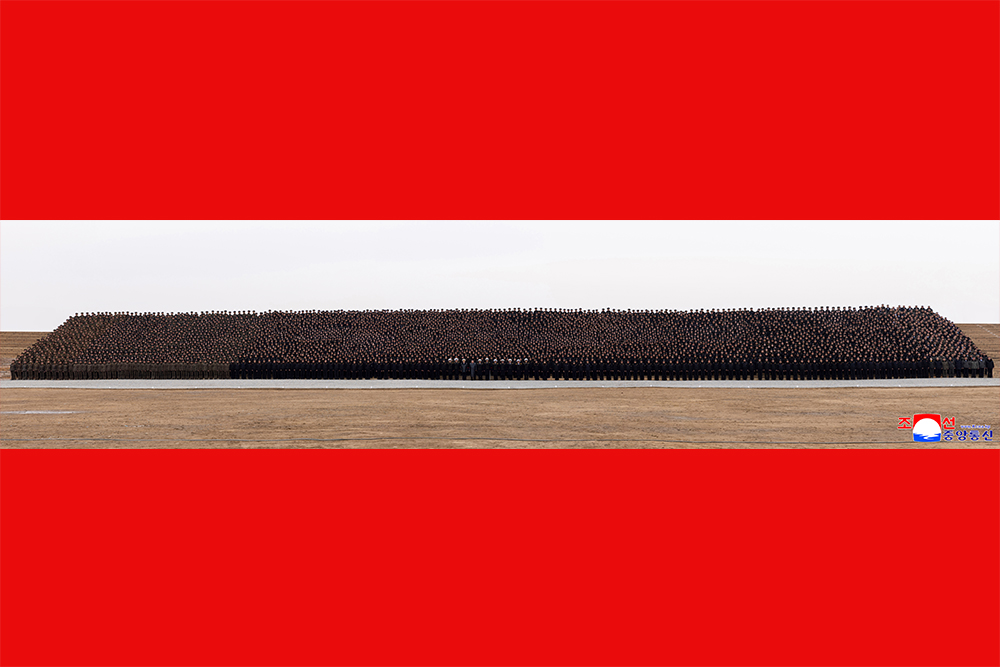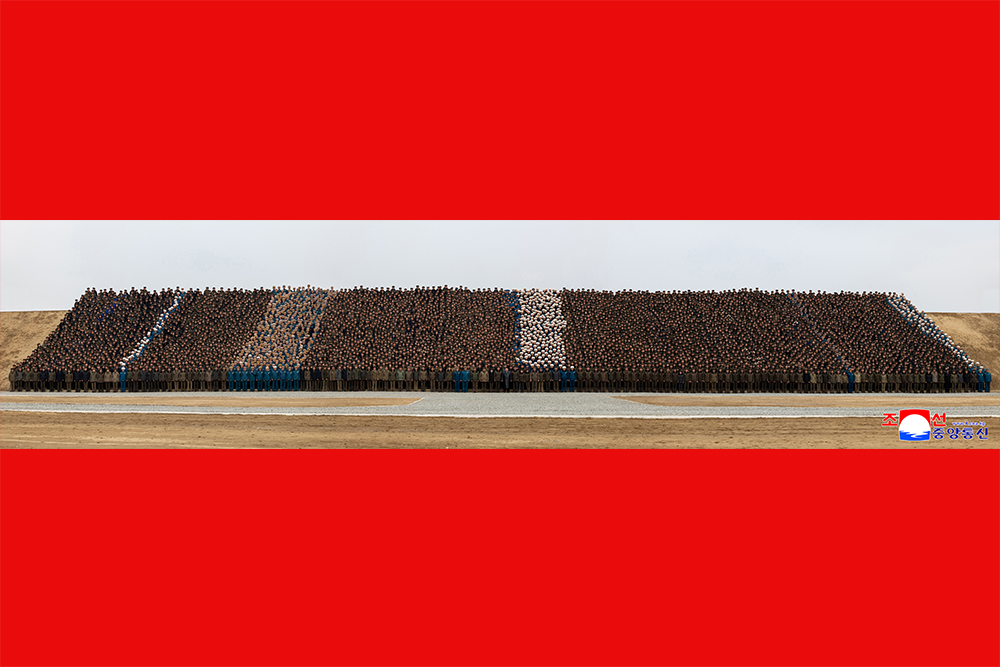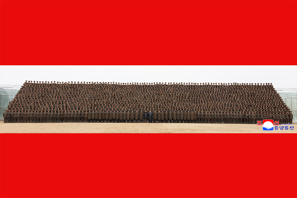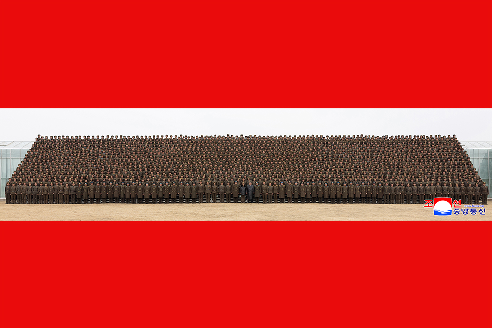 Ким Чен Ын сфотографировался на память с воинами-строителями и представителями молодежного авангарда, участвовавшими в строительстве Синичжуского тепличного комбината.