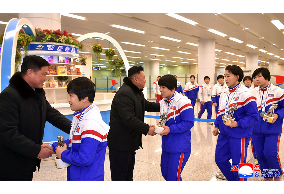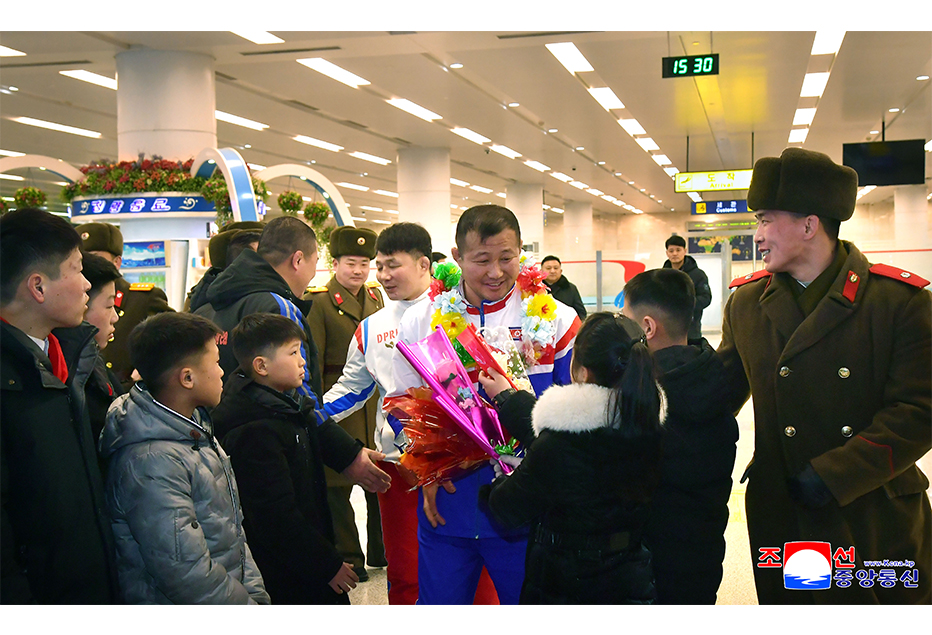Спортсменов, которые прославили честь Родины, встретили 4 февраля руководящие работники области спорта и физкультуры, спортсмены и семьи борцов в Пхеньянском международном аэропорту.