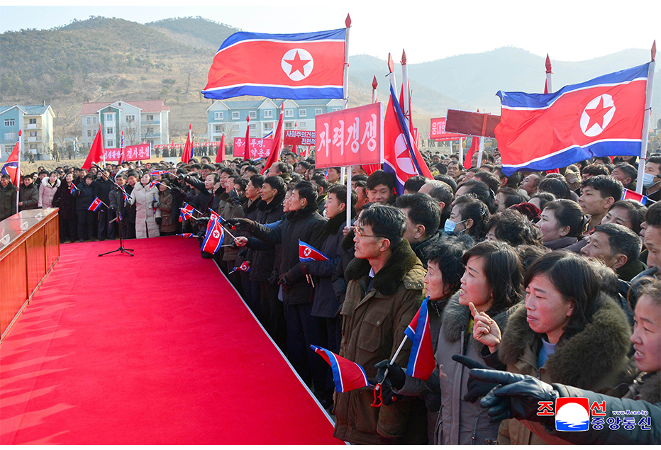 지방의 발전이 우리식 사회주의의 전진을 대표하고 지방의 리상적인 면모가 우리 국가의 참모습으로 되는 전변의 새 력사를 펼쳐주는 어머니당에 대한 지역인민들의 다함없는 신뢰심과 당중앙의 숙원을 성취함에 더욱 철저하고 완벽할 건설부대 관병들의 격양된 투쟁열기가 착공식장에 차넘치였다.