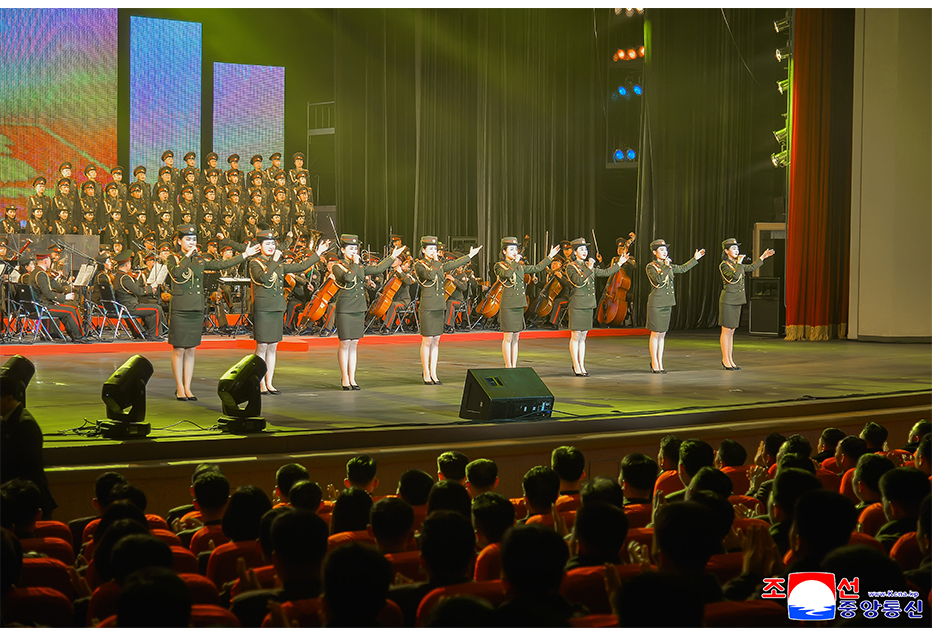 Исполнители с пафосом воспели величественный и беспримерный героизм КНА, преданно поддерживающей идеи и руководство партии и беспощадным оружием защищающей суверенитет нашей Республики и благополучие народа.