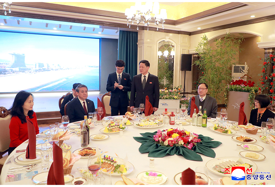 The participants in the reception shared the joy of greeting the lunar New Year's Day, a traditional folk holiday of the Korean and Chinese peoples, and deepened friendship, expressing their will to develop the friendly and cooperative relations between the two countries, true to the noble intention of the top leaders of the DPRK and China.