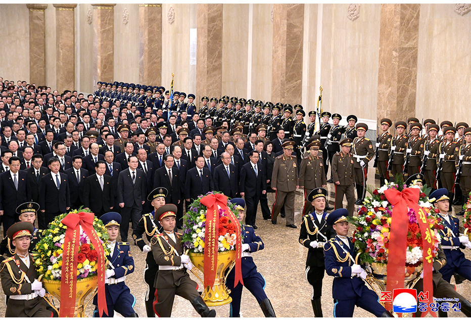 党政领导干部在伟大领导者金正日同志华诞84周年之际参谒锦绣山太阳宫