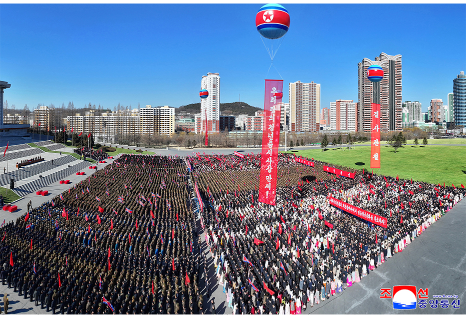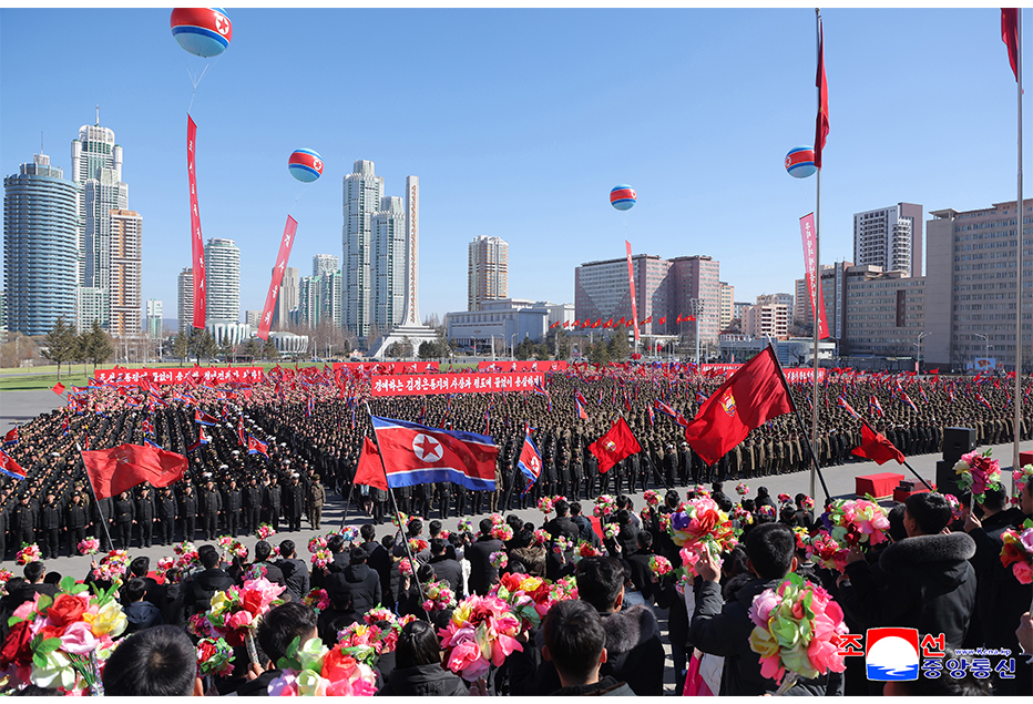 李日焕说,军人建设者和青年突击队员们出色建设为伟大的我国人民谋福祉的大规模纪念碑式创造物且为党的九大献礼,并向全世界显示了我国青年带头拥护党的思想和事业的革命精神和斗争气概、社会主义的优越性和无穷发展潜力。李日焕受朝鲜劳动党中央委员会委托,向他们表示热烈的感谢和祝贺。