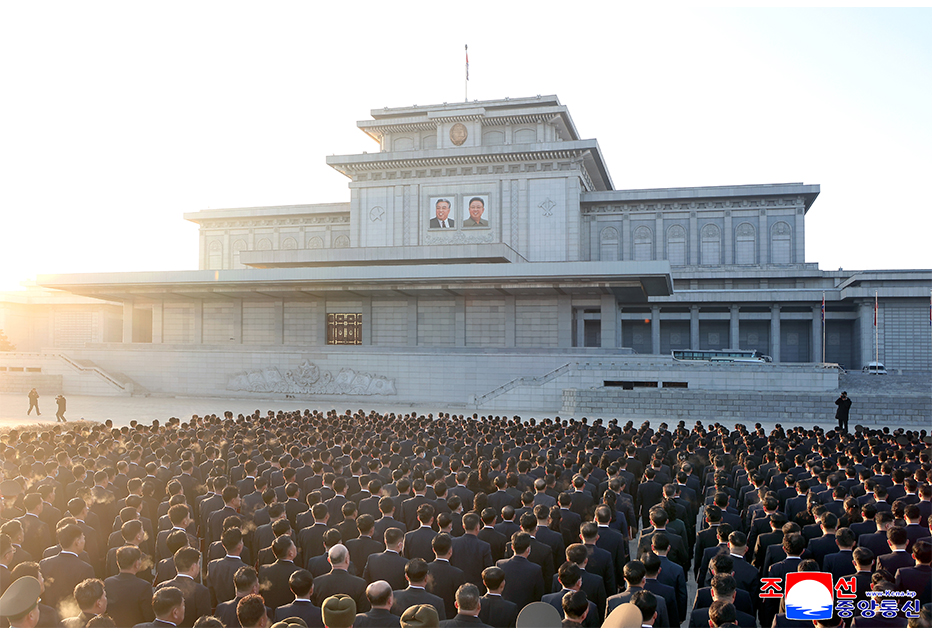 조선로동당 제9차대회 대표자들 금수산태양궁전을 찾아 숭고한 경의 표시