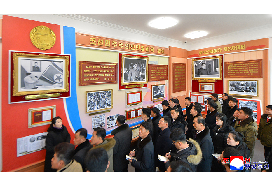 위대한 수령님께서 당창건의 력사적위업을 완수하시고 조선로동당을 혁명의 강력한 정치적참모부로 강화발전시켜주신데 대한 해설을 들으면서 사적물들과 사적자료들을 깊은 감명속에 돌아보았다.