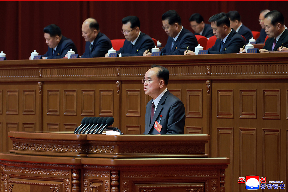 Kim Jong Un, Jo Yong Won made a report to the congress on the decision of the First Plenary Meeting of the Ninth Central Committee of the WPK held earlier.