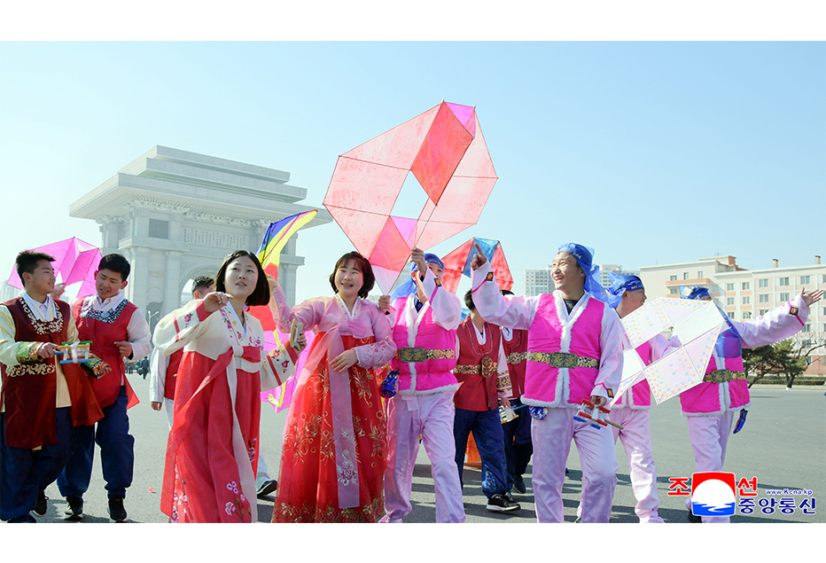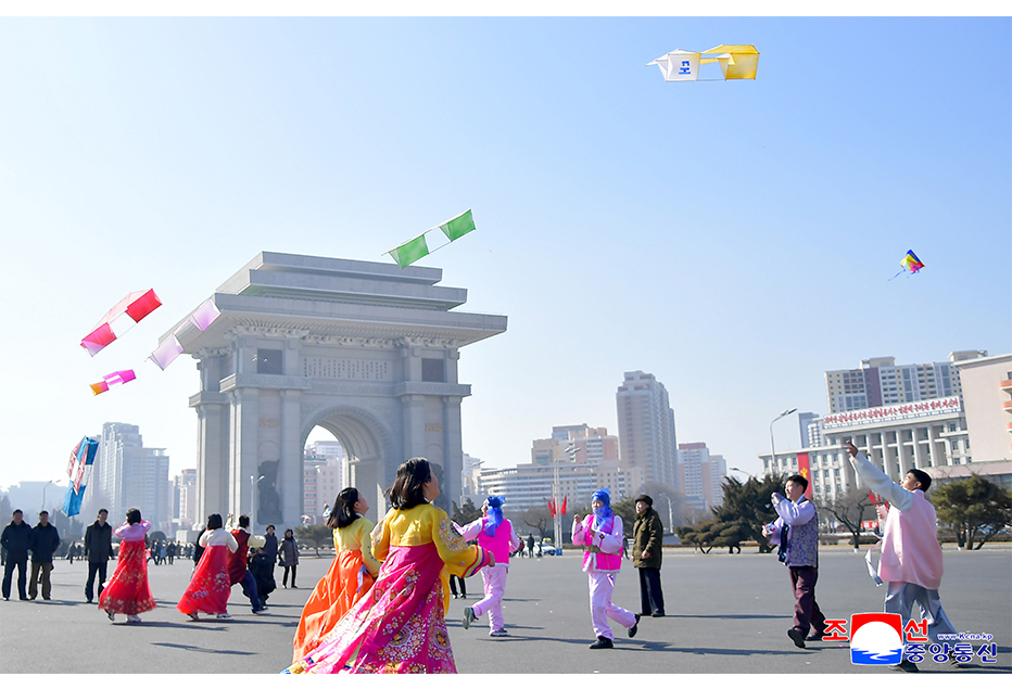 설명절을 맞으며 수도의 개선문광장과 지방의 곳곳에서 학생소년들은 연띄우기와 팽이치기,줄넘기 등 민속놀이로 시간가는줄을 몰랐다.
